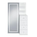Modern style meets practicality with the Vancouver Floor Mirror with Storage. LED lighting framing the perimeter of the durable tempered glass adds stylistic flair, easily making this mirror a statement piece in your home. The mirror doubles in function as a sliding door, opening to reveal multiple shelves which perfectly complement the adjacent storage drawers and open shelving. Finished in a crisp and versatile white, the Vancouver Floor Mirror with Storage is a functional and sleek addition to your home's décor. Features: • Sliding, Tempered Mirror Door Conceals Additional Storage • Integrated Drawers Streamline Organization • Drawers with Cam Locks & Ball Bearing Glides • Dimming LED Light Adds Modern Flair • Large Portrait Mirror for Full-Body View • Due To Lighting, Product Color May Slightly Vary from Images Dimensions: Depth: 18.0" x Width: 39.0" x Height: 68.0" Weight: 124.0 lbs.