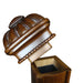 The Barkley Square Queen Poster Bed features a classic warm oak finish. This commanding piece is adorned with intricate metal work on the headboard and stylish fluted bun feet. Hidden storage features in the bed posts are perfect for keeping your most precious valuable safe. - Four Poster Bed - Hidden Storage in Bed Posts - Spool Beading - Intricate Metal Work on Headboard - Fluted Bun Feet - Warm, Oak Finish - Requires Mattress and Box Spring Solid Hardwood/Plywood Pine Veneer on MDF/Particle Board Pine Wood Moldings Butt Joint Construction Corner Blocked Reinforcements 98 D x 67 W x 62 H, 163lbs. 1 Year Limited Manufacturer Warranty