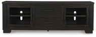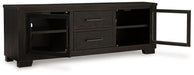 This TV stand brings a rustic vibe to urban contemporary design. It’s a modern approach to natural beauty, with the worn black finish giving your living room a gently aged charm. Console and media storage is made easy with cabinets and drawers. And the stunning simplicity of its color palette allows you to seamlessly coordinate this TV stand with your existing decor.