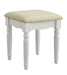 ATHY White Vanity w/ Stool, 15"L X 15"W X 17 1/2"H, 160.6lbs. Treat yourself to a glorious morning ritual with this lovely, antique style vanity and stool set. Look through the arched, tri-fold mirror sitting atop a padded fabric stool and comfortably beautify to your heart's content. Features: Transitional Style Storage Drawers Knob Pulls 3-Sided Mirror Solid Wood, Wood Veneer, Others White