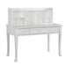 The Desk & Hutch Set features a crisp white finish, delicate moldings, and crystal like knobs for a touch of sparkle. With two small drawers for storing supplies and plenty of shelving in various sizes she- s sure to stay organized and inspired. - Crisp white finish - Delicate molding - Crystal-like, acrylic knobs - Three drawers - Shelves in various sizes Solid wood; plywood; particle board with Gumtree veneer; engineered wood; pine wood; acrylic and metal knobs with screw; wood drawer glides 23 D x 48 W x 45 H, 81lbs. 1 Year Limited Manufacturer Warranty