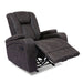 Experience the luxurious comfort and contemporary style of this multi-functional glider recliner. The arms each feature a cup holder with lift-up mechanism exposing a storage compartment with ample storage for remotes, phones, and other accessories. The cover is a soft, luxurious, and durable fabric with an accent stitch to highlight the sleek design.