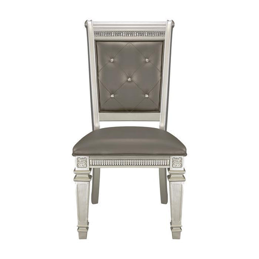 Bevelle Collection by Homelegance Furniture Silver finish Acrylic inset framing Upholstered seat and back Button-tufted back Sold in set of 2