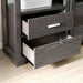 Tienen Gray Pier Cabinet, 24"W X 14"D X 78"H, 99.44lbs. Curate your living space for the ultimate gaming and entertainment experience. The gray finished entertainment set creates cool tones that instill a relaxing ambiance. Intricate wavy designs create texturized patterns, adding chic edgy detailing. Sim ply organize with glass paneled cabinets and open shelves that frame the structural design while displaying collectibles in the glass-framed curio and complete the aesthetic with your TV perfectly centered for a seamless entertainment experience. Features: Transitional Style 8mm Tempered Glass Shelves Storage Drawers & Shelves Solid Wood, Wood Veneer, Others Gray Finish