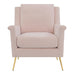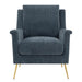 The Cambridge Accent Chair is living room goals! This mid-century style chair features gold legs, adding extra flair to this already stylish set. Not only is the cushion foam filled, but the oversized, deep seating will make this more than just a pretty chair you display; but one that you will also love to relax in. The straight arms are plush like, and feature a slight overhang. Sleek, clean lines and piping throughout make this chair a standout for years to come. - Mid-Century Style - Large, Oversized Deep Seating - Plush, Overhang Arm - Sleek, Polished Gold Legs - Piping - Transitional Colors Seat Cushion Construction: S-Spring Back Cushion Construction: Webbing Arm Cushion Filling: Foam Seat Cushion Filling: Foam, Coil Pocket Back Cushion Filling: Fiber Wood Frame Type: Pine, Plywood Legs: Metal (Iron) 33 D x 30 W x 36 H, 40lbs. 1 Year Limited Manufacturer Warranty