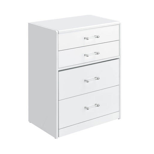 The Ellen 5-Drawer Chest in White is the perfect addition to your bedroom. Crafted of solid wood, mdf, and plywood in a ash white finish. Exposed w...