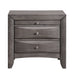 The Emily 2-Drawer Nightstand is the only bedside table youll ever need! This nightstand comes with two, spacious drawers to store away all of your bedside necessities. The nightstand also features a pull out tray, perfect for keeping your favorite book in place. A dust proofing layer on the bottom drawer helps protect your belongings. Silver finish metal drawer knobs pair beautifully with the weathered, gray oak finish. Sleek, clean lines makes this contemporary design a staple in your home for years to come. Features: • Two Drawers • Pull Out Tray • Silver Knobs • Dust Proofing on Bottom Drawer • Gray Finish • Raised Drawer Fronts Dimensions: Depth: 17.0" x Width: 26.0" x Height: 26.0" Weight: 44.0 lbs.