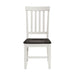The Kayla Side Chair Set is the missing piece to your Kayla Dining Table! This duo comes with a wooden seat and a slat back, perfecting that cottage chic style. This standard dining height chair set comes in a two tone finish. The wire brush, gray finish covers the seat while the transitional white covers the back and legs. Add this set to your dining room today to create the perfect transitional, cottage chic style. - Includes Two Chairs - Standard Height - Slat Back - Wire Brush, Gray Finish on Seat - Wooden Seat - Cottage Chic Style - Straight Legs Acacia Wood Acacia Veneer MDF Rubberwood Plywood 23 D x 18 W x 40 H, 38lbs. 1 Year Limited Manufacturer Warranty