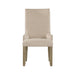 The Stone Standard Height Parsons Chair Set brings refined style and warm design to your dining area. This lovely chair features a tall chair back, low arms, and is fully upholstered throughout. The simplicity of this chair is undeniable .The grey finish chair legs ties into the cream upholstery. The color combination between the taupe and grey are a perfect match. Also, if you wanting shake things up a bit, try the side chair for additional seating options! - Includes Two Chairs - Low Arms - Tall Back - Fully Upholstered - Taupe Upholstery - Grey Finish - Distressed Markings on Legs - Foam Cushion Seat - Transitional Design Rubberwood Foam 29 D x 23 W x 45 H, 59lbs. 1 Year Limited Manufacturer Warranty