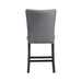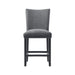 The Tuscany Counter Height Side Chair Set is going to look gorgeous in your dining room! This counter height set includes two side chairs, that are upholstered in a transitional, charcoal fabric. Chrome nail head trim outlines the edges of the chairs, instantly adding extra flair to this already stylish duo. The foam cushion seat and back will keep you plenty comfy through even the longest of dinners. The tall solid back adds a little extra drama, creating a look that youll never tire of! Add these chairs to your dining room today! Features: • Includes Two Chairs • Charcoal, Upholstered Seats • Chrome, Nail Head Trim • Solid Back • Dark Brown Legs • Foam Cushion Seat and Back • Counter Height • Transitional Style Dimensions: Depth: 27.0" x Width: 20.0" x Height: 42.0" Weight: 18.0 lbs.
