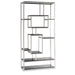 The Ezra Bookshelf is modern glam at its best! This vertical bookshelf will be the main attraction no matter what room you decided to display it. This stunning piece features a chrome finish along with black shelves throughout, making it a dynamite color combination. Find your best decor and display it throughout the shelf for ultimate decorating goals; then post it on social media and just wait for those compliments to roll in. Adding this bookshelf to your home will instantly add style and glam, a look youll never get tired of. - Vertical Shelf - Multiple Shelves - Chrome Finish - Black Shelves - Modern Glam Design Particle Board Metal 12 D x 36 W x 71 H, 59lbs. 1 Year Limited Manufacturer Warranty