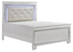 • Tufted button Bi-cast Vinyl (faux leather) upholstered headboard with LED lighting and beveled mirror frame