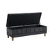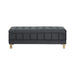 The Crosby Tufted Storage Ottoman is the missing piece for your home! This storage ottoman features a tufted lid, adding extra flair to this already stunning piece. Detailed square stitching and piping along the ottoman elevates it to the next level. Easily store away blankets in the available storage space. The velvet fabric complements the natural finish of the wooden feet beautifully. - Storage Ottoman - Tufting on Lid - Square Detail Stitching - Wooden Legs - Luxurious Velvet Fabric - Modern Design - Multiple Color Options Wood Frame: Rubberwood/Plywood Foam 19 D x 52 W x 18 H, 43lbs. 1 Year Limited Manufacturer Warranty