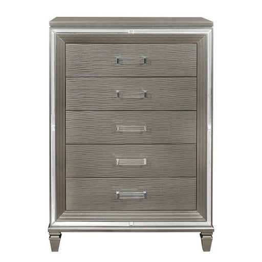 Homelegance (Homerica East)Original price $1,250.57Current price $961.98| /Tamsin Collection by Homelegance Furniture Silver Grey Metallic finish Made of manmade wood and wood Embossed, textural panels with beveled mirr...