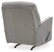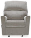 If style is the question, then this rocker recliner is the answer. Its clean-lined profile is beautifully contemporary. Plush chenille fabric and plump cushioning make it so easy to comfortably kick up your heels. And the recliner's richly neutral hue complements a variety of decor.