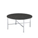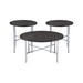 Dakota 3PC Occasional Table Set is the perfect addition to your living room. This set includes, one coffee table and two end tables. The coffee table and end tables mirror each other in construction. 3D paper covers each table top and is designed with a dark charcoal wood appearance. The cool, cross design metal base is coated in a chrome finish making it easy to pair with any of your existing furnishings. The best part of this set is that it ships in one box for amazing convenience! - Set Includes: One Coffee Table and Two End Tables - Round Table Top - Cool, Cross Table Base Design - 3D Paper - Chrome Finish - Ships in One Box - Contemporary Design Particle Board with 3D Paper Metal D x W x H, 43lbs. 1 Year Limited Manufacturer Warranty