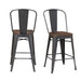 The Moon Bar Stool Set is the perfect addition to your home! This dynamic duo can be used for your kitchen, or if youre super fancy and have a bar in your home, these would complete it! This set definitely has an industrial vibe, but it could also easily be mixed and matched with any other styles. The rounded, panel chair back adds comfort while you lean back and relax. The wooden seat is not only stylish with its wood grain details, but its also pretty comfy. The metal frame gives this set its cool and edgy vibe. - Includes Two Bar Stools - Industrial Design - Woodgrain Details on Seat - Metal Frame - Rounded, Panel Chair Back - Stretchers along Base Metal Frame Wooden Seat Wood Species: Ash 19 D x 19 W x 42 H, 16lbs. 1 Year Limited Manufacturer Warranty