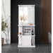 The Wendolyn Wine Cabinet accents your home with its glossy white finish and multifunctional design. COB RGB LED lighting adds modern flair, enhancing this piece's visual appeal. Practical, user-friendly design is noted in features like open shelving, bottle racks, and wine glass holders, which all provide ample storage and display space. A mirror of durable tempered glass furthers this piece's appeal, perfectly complementing the silver metal hardware. For a modern and sleek accent to your dining area, the Wendolyn Wine Cabinet delivers in function and style. Features: • Durable Tempered Mirror Enhances Safety • COB RGB LED Lighting Adds Modern Flair • Cabinets Glass Holders, & Wine Racks Provide Amble Storage Space • 32"W x 15"D x 77"H • Due to Lighting, Product Color May Slightly Vary from Images Dimensions: Depth: 15.0" x Width: 32.0" x Height: 77.0" Weight: 115.0 lbs.