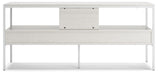 Bring your vision of a modern living room to life with this sleekly designed TV stand. Its linear construction and white finish keep things minimal. An open shelf and two drawers allow you to store in simply streamlined style, rounding out this versatile, striking piece.