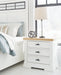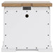 Casual style with substance. This two-tone nightstand raises the bar on comfortably cozy design in your soothing sanctuary. A sturdy silhouette with a classic white finish and black metal hardware exudes modern farmhouse vibes. The butcher block oak veneer top adds a relaxed aesthetic. And bedside charging for your go-to devices is made easy with power outlets and USB ports.