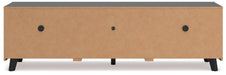 Entertain the art of modern living with this TV stand. Pairing a subtle wood grain look with a trend-right matte black finish, it’s beautifully in tune with your clean-lined design sensibility. Packed with potential, two sliding doors reveal even more adjustable shelving, just the ticket for storing your tech consoles, DVDs and games.